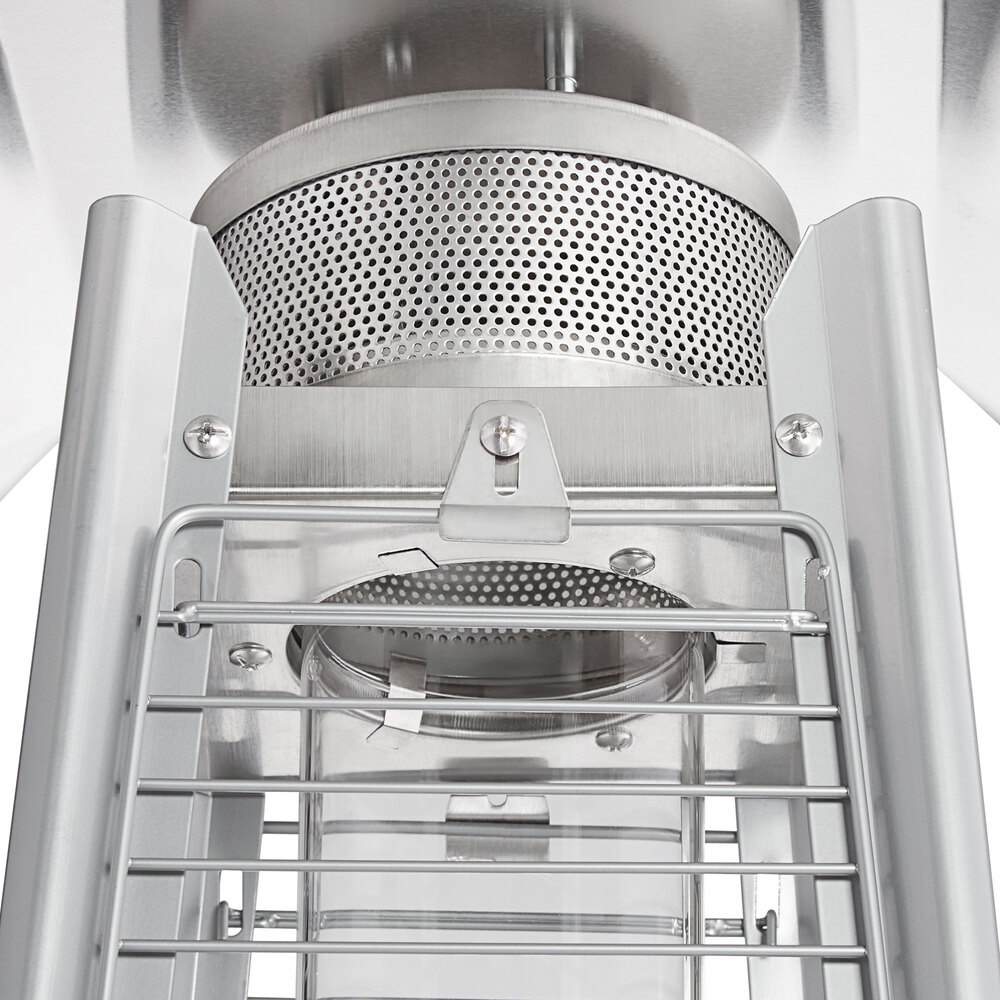 Warm up outdoor events with this Backyard Pro black portable outdoor patio heater with a glass flame tube.